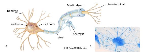 Figure 1.11: (a) The structure of a neuron. (b) Micrograph of a neuron © McGraw-Hill Education