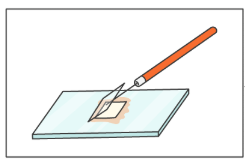 - Add a drop of methylene blue to the slide. This liquid will stain your hands and clothes, so handle it carefully.